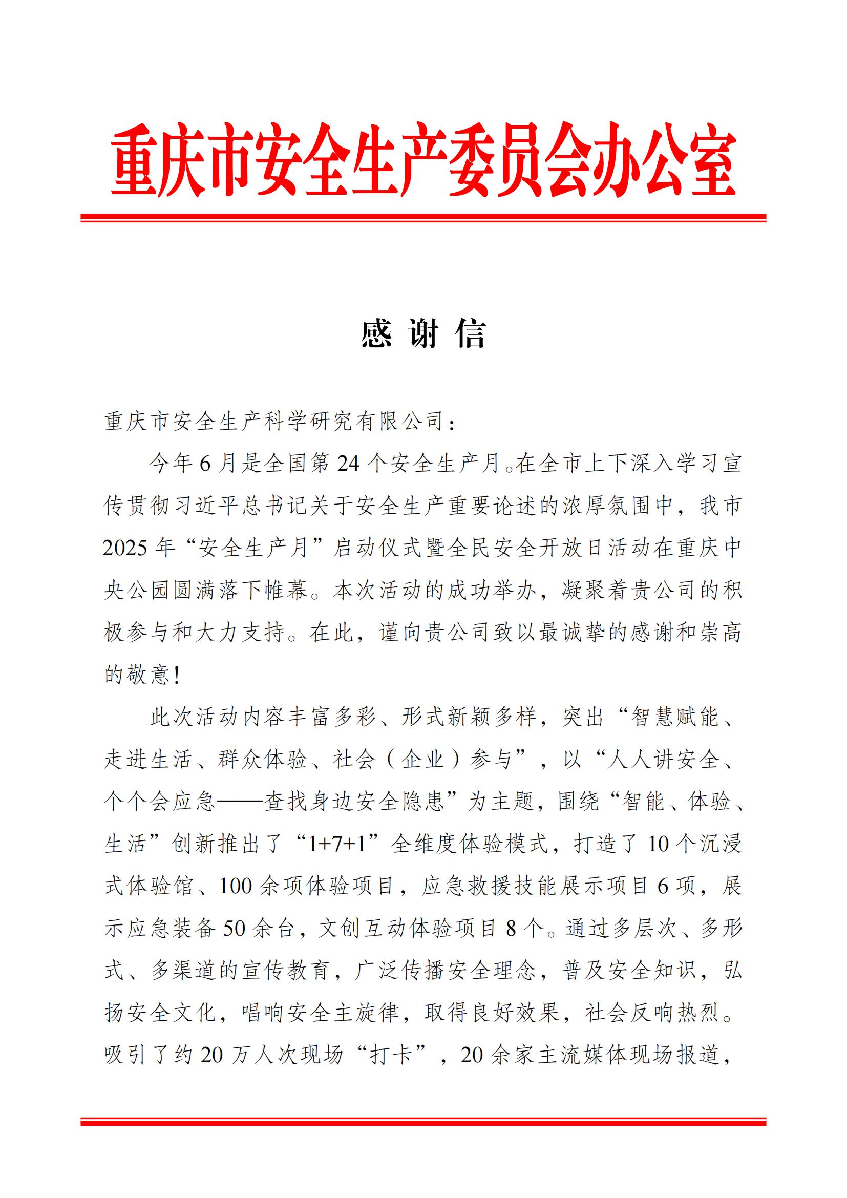 公司以專業(yè)力量助力重慶市“安全生產(chǎn)月”活動